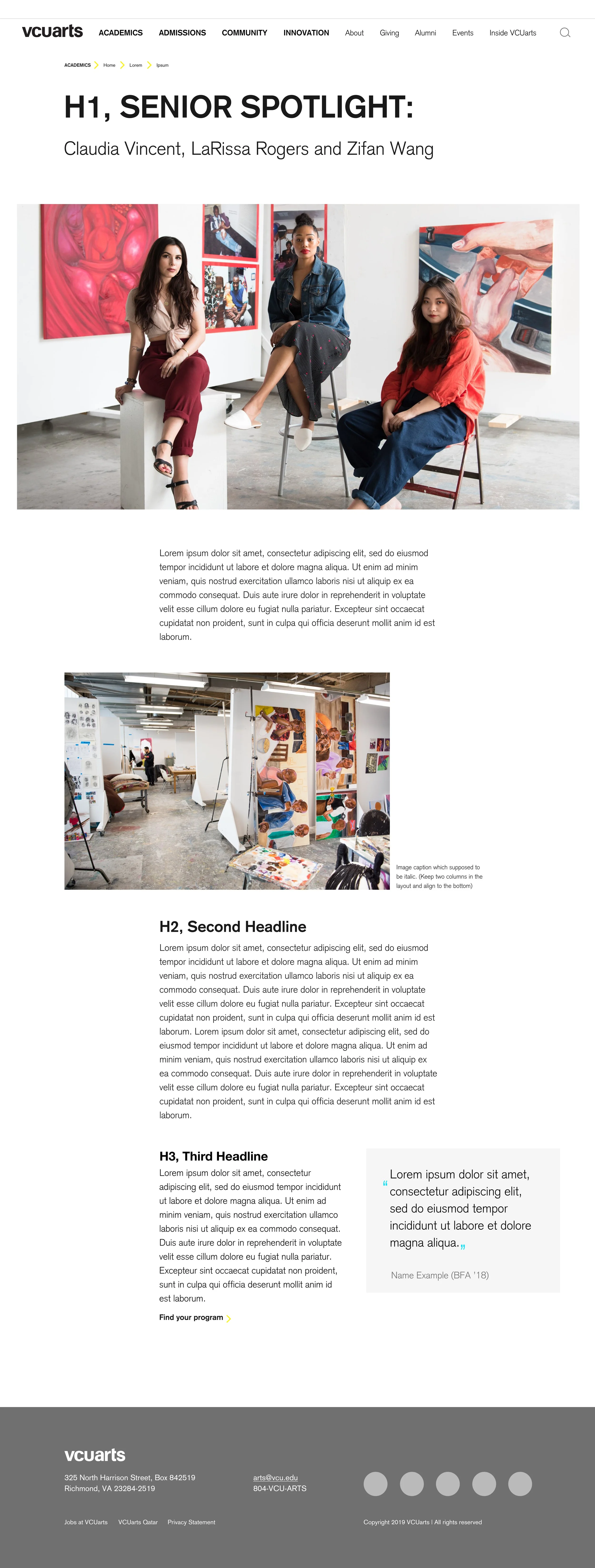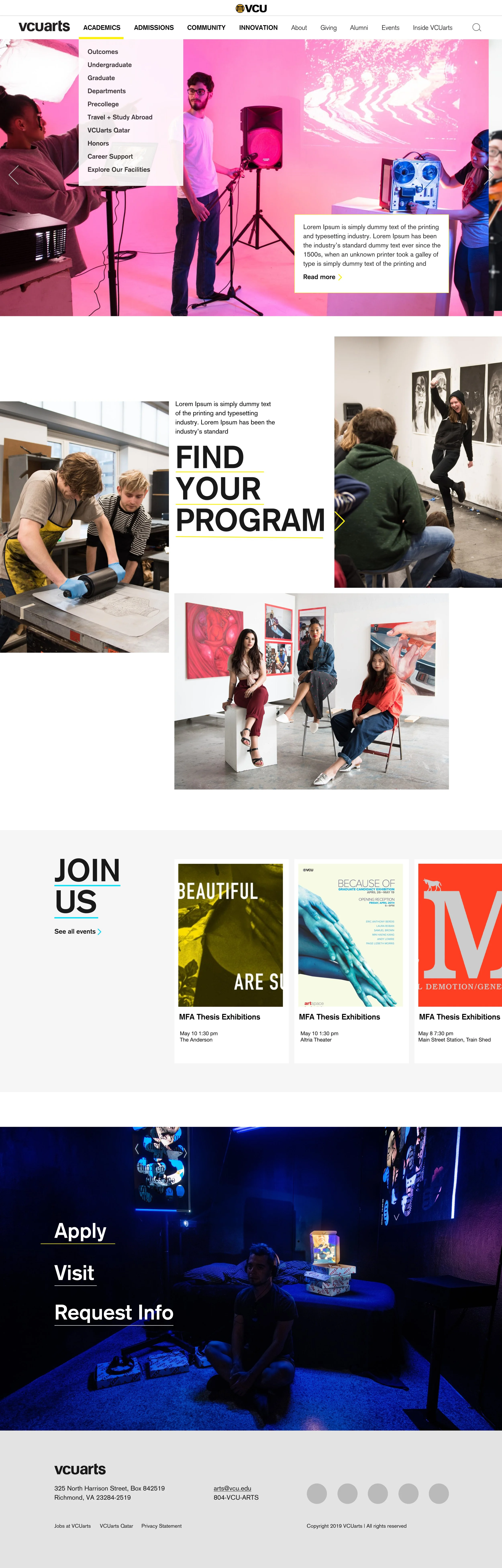 To see the final completed website, please visit arts.vcu.edu.